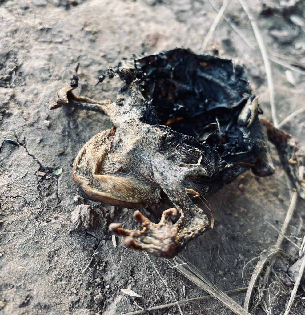 Seeing this empty shell of a frog this morning, or yesterday evening, I cannot be sure such is the frenetic nature of Covid Isolation, it made me wonder. Do frogs shed their entire bodies like snakes do? Is this a new step in the evolution of amphibians due to an excess of flies bought on by the amount of food waste we have been producing over the course of this pandemic and before Eating out of recipe boxes has become the norm and from where i’m stood Gusto seems to be catering to a nation of fatties. We always have tons left over which we try to freeze or reuse but invariably stuff gets jettisoned, magical maggots appear magically leading to flies, which means it’s bounty time for the frogs. And with a rich diet for the frogs comes a new found wealth which they seem to chose to spend on new skin. If they have them in that awful game “Fortnite” then why on earth cannot frogs too? It’s not like the recent boom in harvest mice sweat shops has got a backlog to contend with, Frog skins seemed to be the next logical step; and check out the tiny mouse hands stitching.