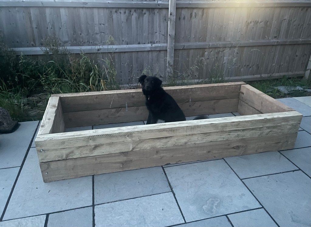 After many months, probably tipping over into the one year plus category, I have finally constructed a raised bed for Mrs T and I to enjoy and grow stuff, who knows what. So the stolen sleepers used to form the edge of a frankly botched together pathway within our estate. The previous builders were a bunch of charlatans and cut corners where ever they saw one, they’d look for corners in a möbius band which I think would just confuse matters. So this path with sleeper kerning was down for a matter of weeks before the taste and tidiness police showed up and took the builders to task ordering them to remove the sleepers presumably to replace them with something else, which I’m sure they have but can not remember as I don’t walk there often, I do take notice of stuff but I haven’t of this weirdly, maybe I need to up my game.